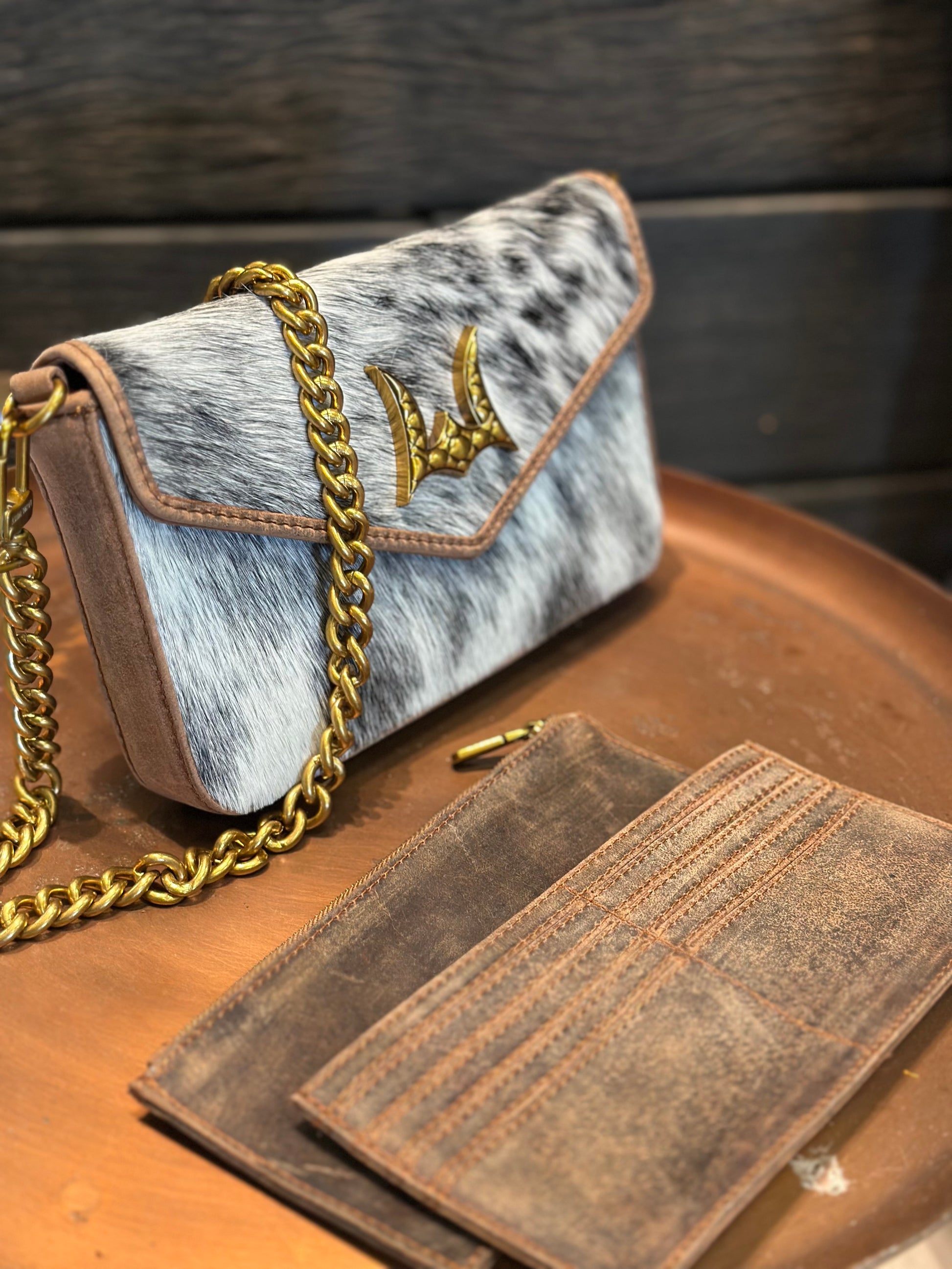 The LW On The Go Mini Chain Bag is a masterpiece of artisanal excellence. Crafted from premium hair-on cowhide, each piece is unique, showcasing the raw beauty of natural textures. The contrast of rich, organic patterns against smooth calfskin trim reflects a timeless dedication to luxury and tradition. Card wallet and coin pouch removable inside